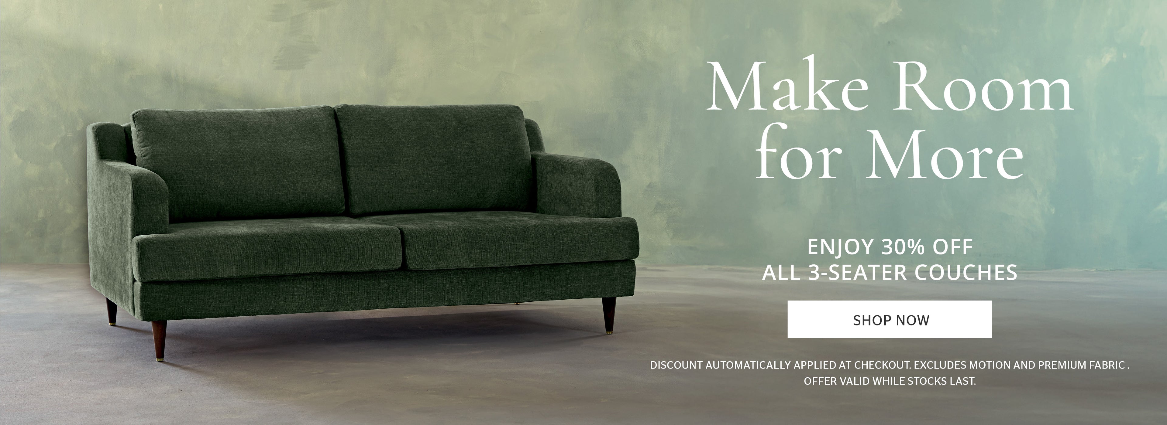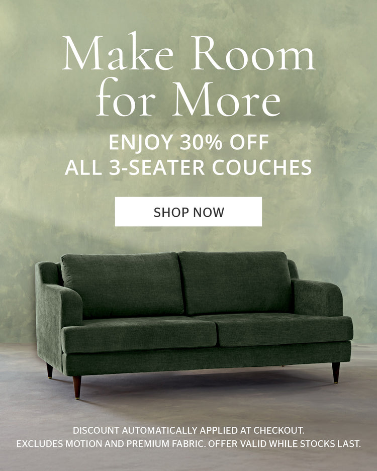 A classic silhouette with a hint of mid-century style, the Rococo 3-seater couch is an ode to timeless beauty. From the curved armrests, brass accents, and wooden legs, every detail is a premium expression of luxurious comfort. Available in our range of beautiful fabrics,...