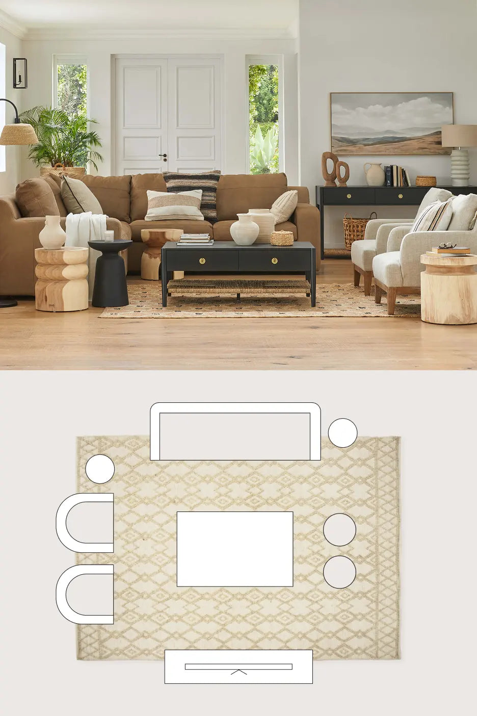 Top tip: Anchor your rugs by placing them partially under key furniture pieces to tie your space together.