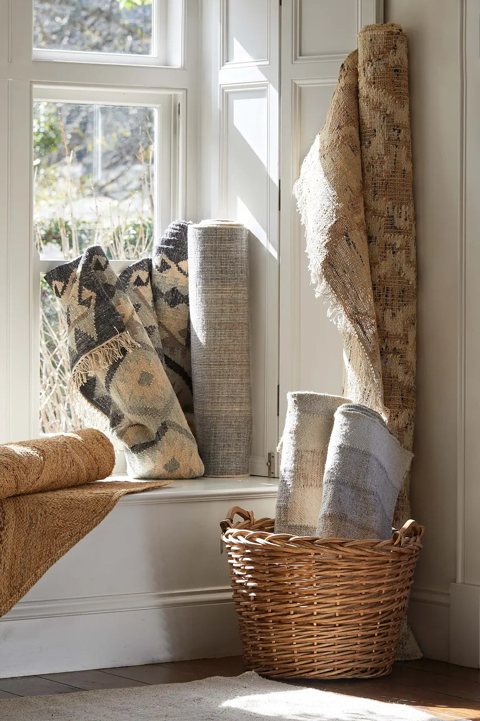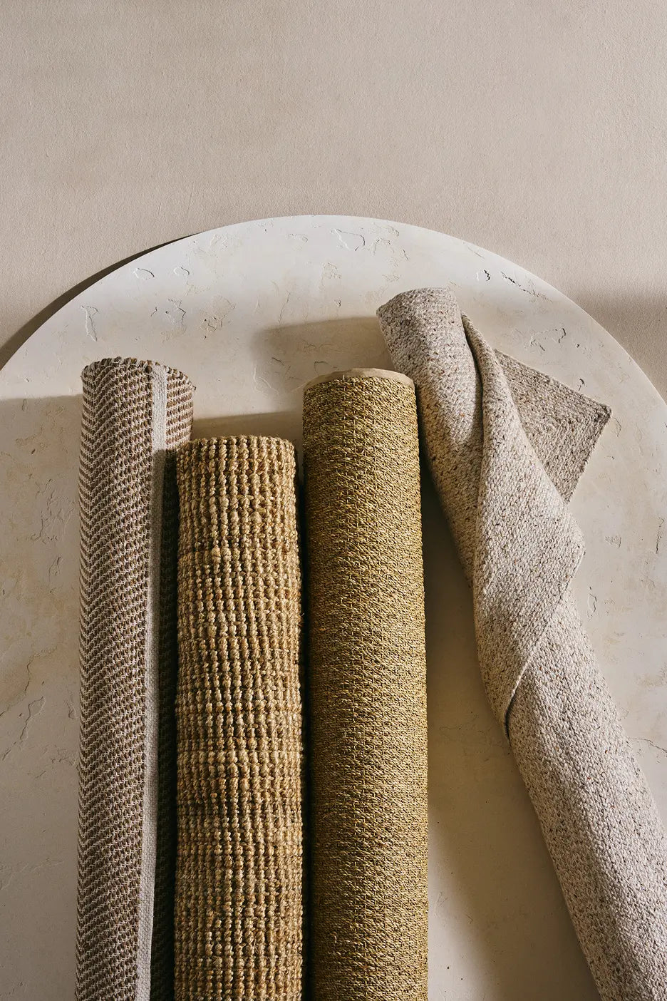 Jute is durable and adds an earthy touch to the home, making it a great choice for the living room.