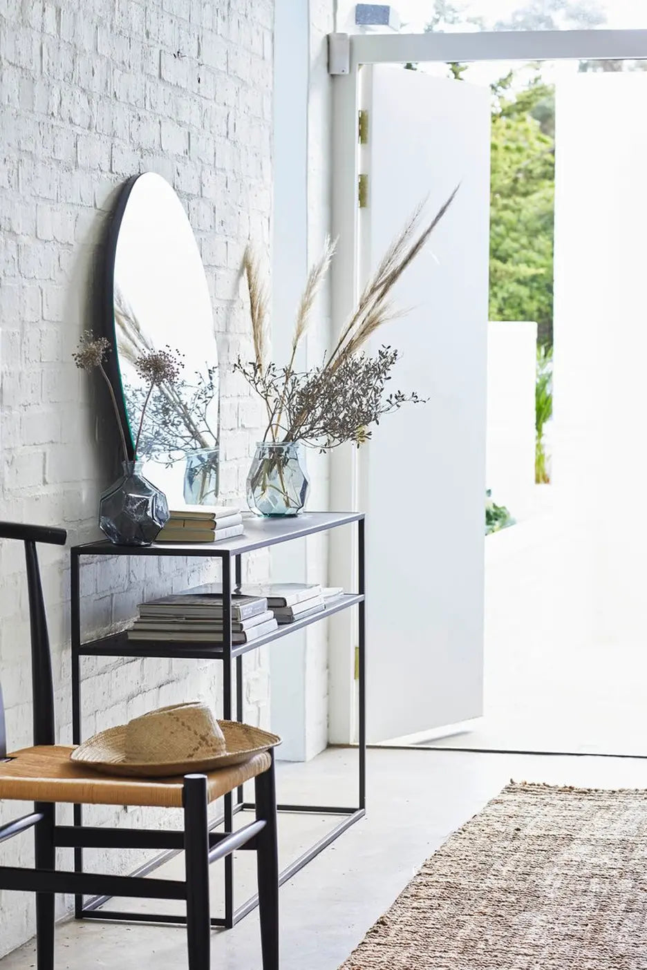 An entrance area is a traffic-heavy space, so you’ll want a durable, tightly woven rug that can withstand exposure to shoes and dirt. Good options include those made from wool or polyester. You’ll also want something that’s easy to remove and clean
