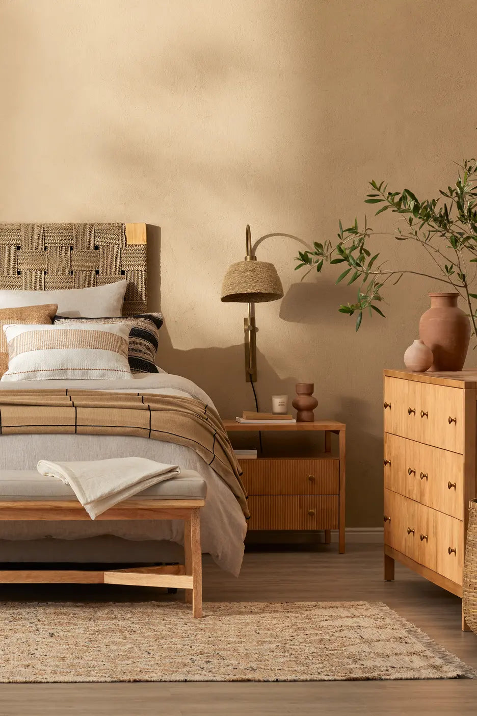 If you want an understated yet sophisticated way to fill the space without adding a console or cabinet, a sleek bench like our Scandinavian-inspired Addison 1.4m Bench might be the perfect solution.